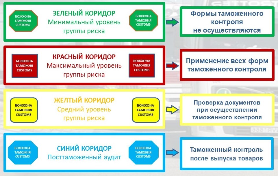 Ранее в республике с 1 декабря 2018 года была внедрена Автоматизированная система управления рисками с применением «желтого» и «красного», контролирующая товары и транспортные средства с высоким показателем уровня риска или определенные случайным выбором.